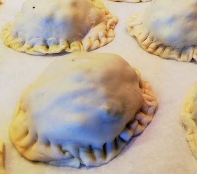 Chiudere sovrapponendo un uguale disco di pasta, schiacciare i bordi con i rebbi di una forchetta per sigillare bene, spennellare con tuorlo d'uovo sbattuto con un cucchiaio di latte